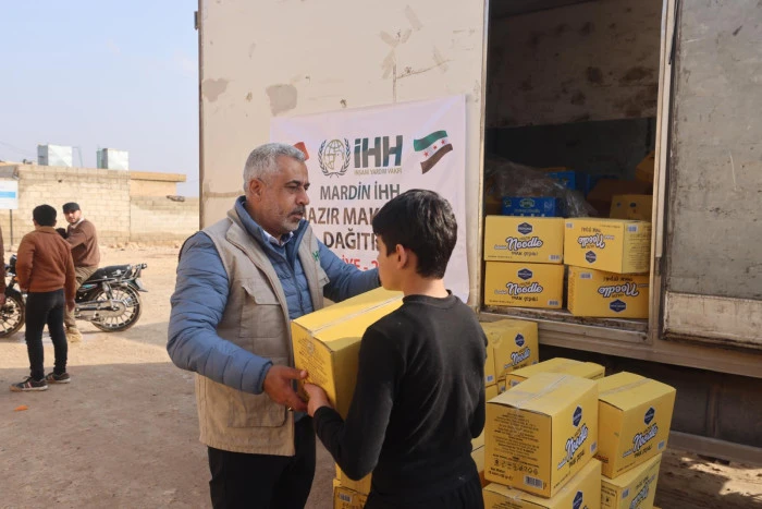 Mardin İHH, Suriye’de yaşanan çatışmalar ve zorlu kış şartları nedeniyle Ayn el Arab’da yaşayan sivillere yönelik yardım çalışmalarını sürdürüyor. Çatışmaların ardından ateşkes ilan edilmesiyle birlikte 26 Ocak’ta Ayn el Arab’a yönelik insani yardım koridoru açıldı. Halep Valiliği ile sivil toplum kuruluşlarının iş birliğinde gerçekleştirilen çalışmalar kapsamında Mardin İHH İnsani Yardım Derneği, ilk etapta 1 TIR dolusu yaklaşık 100 bin paket hazır makarna dağıtımı gerçekleştirildi.