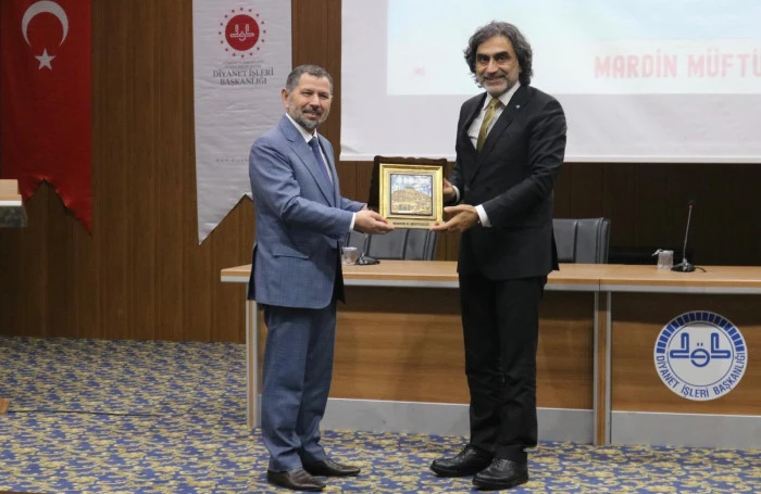 Programın ardından Mardin İl Müftüsü Dr. Enver Türkmen, katılımından dolayı Prof. Dr. Halis Aydemir'e hediye takdim etti.