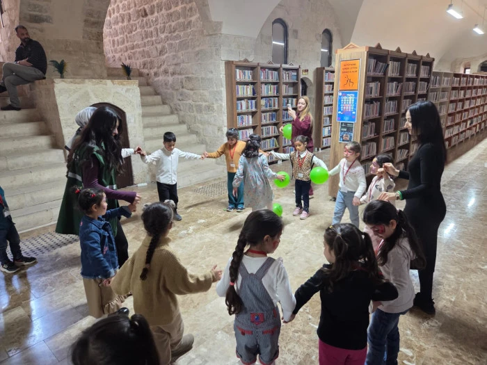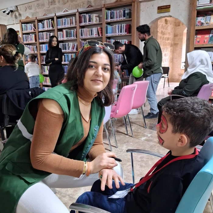 Yeşilay gönüllüleri tarafından minik ziyaretçilere yüz boyama başta olmak üzere çeşitli hediyelerde hem Yeşilay şubesi hem de Mardin Halk Kütüphanesi müdürlüğü tarafından veriliyor