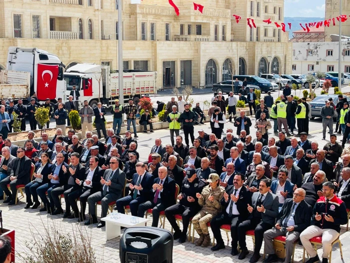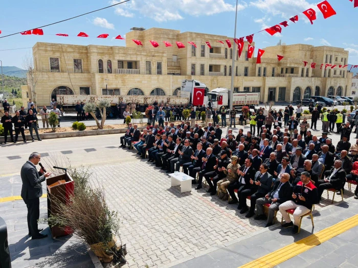 Dağıtım töreni, protokol üyelerinin katılımıyla gerçekleştirildi.Törene Mardin Büyükşehir Belediyesi Genel Sekreteri Kemalettin Sakın, Yeşilli Kaymakamı Mehmet Sadık Kılıç, Yeşilli Belediye Başkanı Hayrettin Demir, Mardin İl Tarım ve Orman Müdürü Ender Muhammed Gümüş, Büyükşehir Belediyesi Genel Sekreter Yardımcısı Ahmet Seydaoğulları, ilçe protokolü, muhtarlar ve çok sayıda vatandaş katıldı.