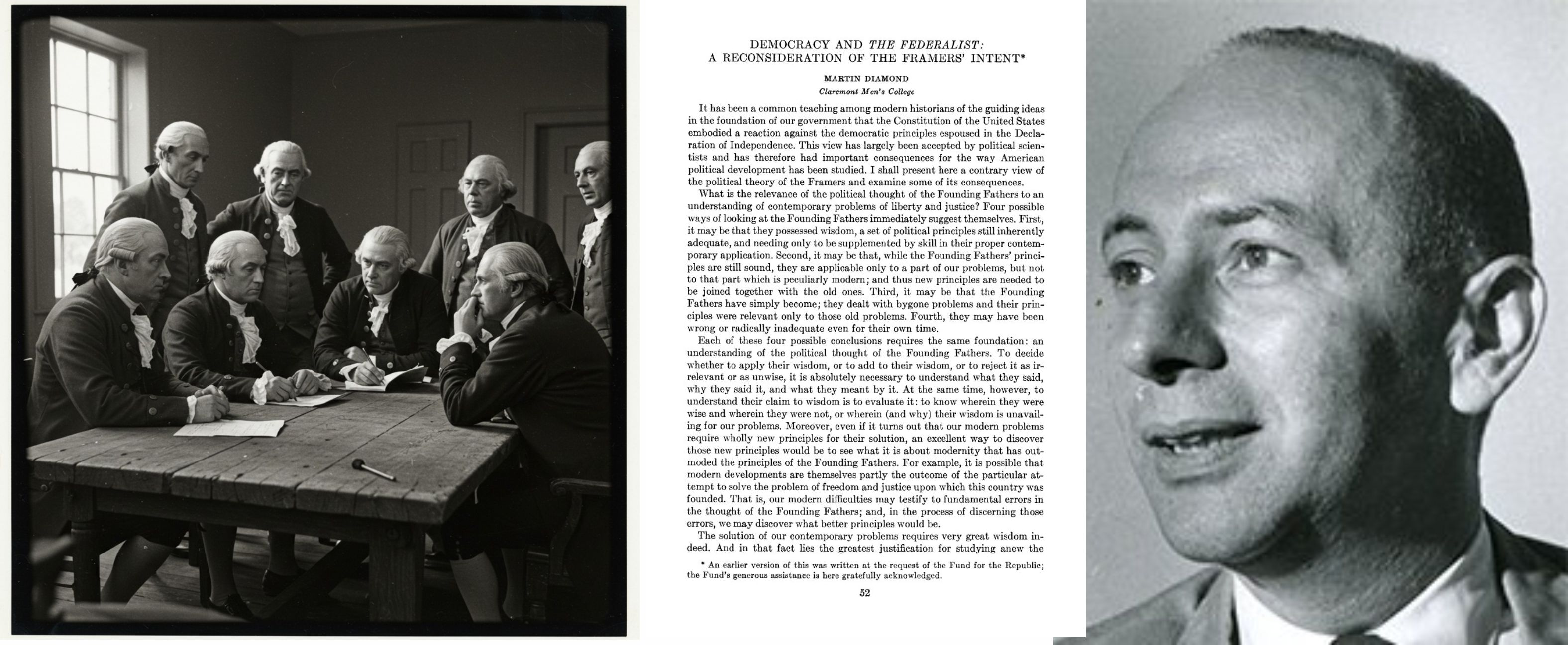 Belki de 20. yüzyılda hiçbir metin, Martin DİAMOND'ın 1959’da yazdığı “Demokrasi ve Federalist/Democracy and The Federalist” adlı makalesi kadar bu düşüş anını tam olarak yakalayamamıştır.